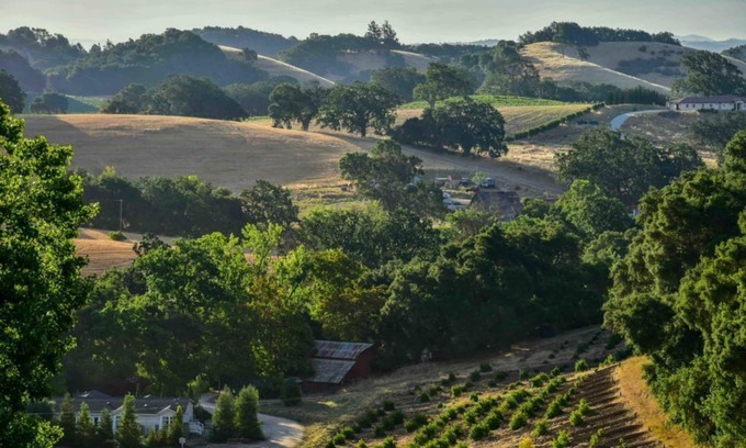 Orchard Hill Farm sits on a hill overlooking 36 acres with amazing vineyard and countryside views. There are beautiful gardens, ancient oaks and fountains. The upstairs guest house over the carriage house is 1350 sq feet with 2 bedrooms each with their own balcony and bathroom. There is a comfortable living area between the 2 rooms with a kitchen, dining area, gas fireplace, seating area and a 3rd deck overlooking vineyards. The kitchen features a four-burner cooktop, microwave, toaster oven, and refrigerator, though no conventional oven. This gorgeous guesthouse is perfect for 2 to 4 guests. Brand new gas BBQ and gas fire pit on site! (Photos coming soon.)