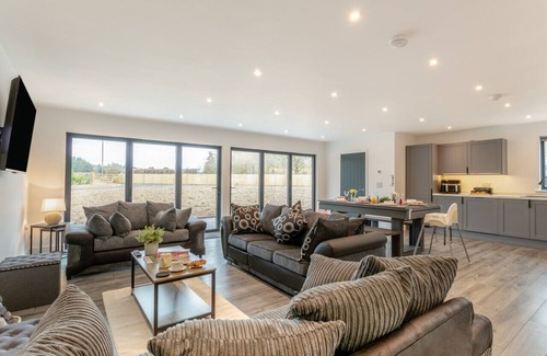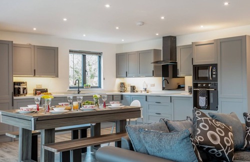 Entering this fantastic single-level lodge, the welcoming open-plan lounge/kitchen/diner provides a fresh and airy space for you all to get together and unwind after a great day exploring Devon. Light streams in through the bi-fold doors and into the inviting lounge which features a Smart TV and sumptuous seating. The central dining table is perfect for family meals and can be converted into a games table for more competitive guests to play table tennis, pool or table football. The thoughtfully organised kitchen has plenty of equipment for preparing your favourite dishes. Exploring this charming lodge further, the hallway leads off to three cosy bedrooms, each with a Smart TV for lazy mornings. You will have a choice between a relaxing double bedroom with its own en-suite shower room, a cheerful twin room which can be made up as a king-size on request, and a spacious family room with a double bed and additional bunkbeds to sleep an extra two. The accommodation also offers a refreshing family bathroom.