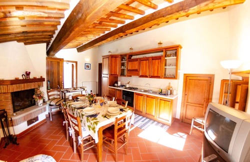The apartment is very cosy, furnished in country style with terracotta floors and beamed ceilings. Air conditioning only in the bedrooms.