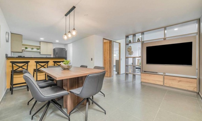 Bienvenidos a nuestro estudio de lujo en una ubicación privilegiada cerca del Centro Comercial El Tesoro, Provenza y Parque Lleras. Este estudio está diseñado con una decoración moderna y elegante para brindarle una experiencia de alojamiento de lujo.