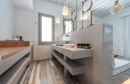 Set in Ornos, 1.6 mi from the cosmopolitan Mýkonos Town, Osom Resort features an outdoor pool, a sun terrace with sea view, and an on-site bar-restaurant. Free WiFi access is provided throughout and free, on-site parking is available. Every elegantly decorated room and suite includes a flat-screen TV, while certain units include a seating area for your convenience. You will find a kettle in the room. The modern bathrooms come with free toiletries, bathrobes and slippers. The hotel also offers bike hire and car hire. Ornos Beach is 0.6 mi from Osom Resort, while the famous Psarrou Beach is 2.5 mi away. Mykonos Airport is 1.9 mi from the property.