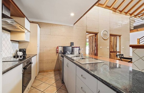 After a day of adventure, unwind in one of six inviting bedrooms designed for ultimate comfort. The primary suite on the ground floor offers a plush king bed, walk-in wardrobe, and private ensuite for a restful retreat. Also downstairs, two stylish king bedrooms and a cosy twin room with two single beds share a spacious main bathroom with a relaxing bathtub. Upstairs, the loft king bedroom provides a tranquil hideaway, while the loft twin bedroom features two single beds and private balcony access. A third bathroom and a fully equipped laundry add extra convenience, ensuring a seamless stay.