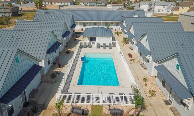Welcome to Old Town Cottages - your gateway to the perfect Port Aransas getaway! Nestled in the heart of Old Town, our 18 charming cottages await to provide you with a memorable vacation experience. Each of our 18 individual cottages offers a comfortable and spacious 2-bedroom, 2-bathroom layout, accommodating up to 8 guests. Our cottages are centered around a tranquil courtyard, where you'll find a shared pool, charcoal grills, picnic tables, a pool house with 2 restrooms, and ice/vending machines. Feel free to unwind, grill up some delectable meals, or just enjoy quality time with your loved ones. We understand that your four-legged family members are important too. Old Town Cottages are pet-friendly, so your furry friends can join in on the fun. As an added bonus, each cottage comes with a 4-seater golf cart for the duration of your stay. It's an excellent way to explore the town and easily reach the beach, making your vacation even more enjoyable. Old Town Cottages are ideally situated within walking distance of charming shops, delicious restaurants, and the vibrant nightlife of Port Aransas. When it's time to hit the beach, a short golf cart ride will take you to the pristine sandy shores of the Gulf Coast. Whether you're planning a family vacation, a friends' getaway, or a reunion, Old Town Cottages are the perfect choice. You can rent multiple cottages to accommodate large groups while enjoying your private spaces.