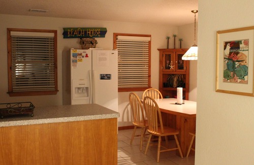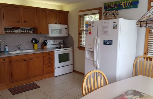 A wonderful separate suite, perfect for couples vacationing together! The large Living Room is complete with comfortable furnishings, to include a great sleeping Futon, flat screen television, stereo and a complete Kitchenette. The Suite has a comfortable Queen size bed in the Bedroom area and a large full Bath. Off of the Living Room is a wonderful Screen Porch and wrap-around Deck with chairs and a picnic table overlooking the Canal.