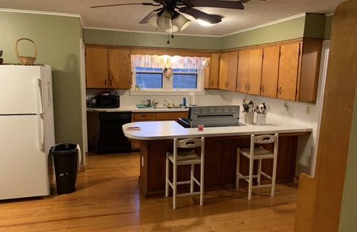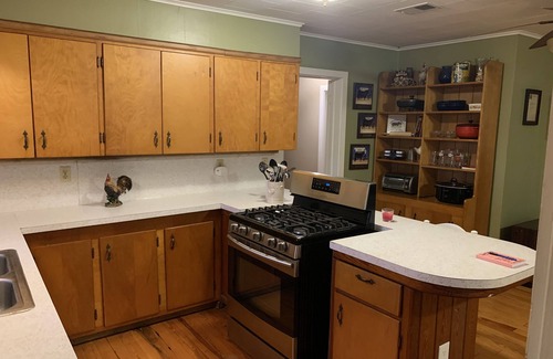 Kitchen is fully stocked with pots and pans, bakeware and utensils, as well as sporting a gas range with griddle. This up-to-date kitchen lets you prepare meals as if you were in your own home. All bathrooms are stocked with towels, and linens are provided. One bedroom has a king bed, one a queen and the third a trundle bed with two twins.
