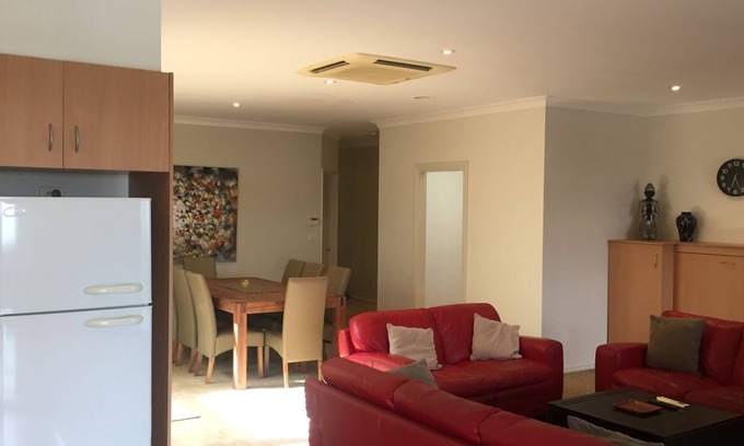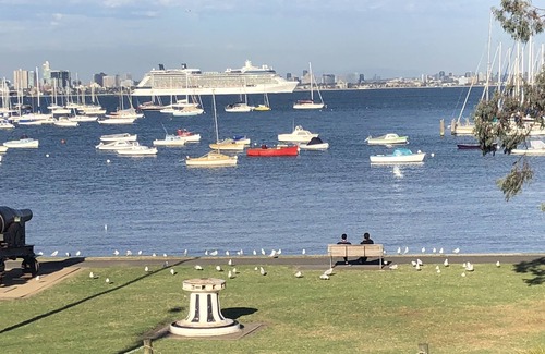 Our apartment can accommodate 5 people with a large en-suited master bedroom with a queen bed and a second bedroom with two king singles and a separate bathroom. There is a king single wall bed in the lounge room, that can be unlocked on request, and a separate laundry with washer and drier and separate toilet. A covered balcony faces Douglas Parade with BBQ and a separate outdoor courtyard with electric vergola roof gives masses of outdoor seating. This apartment is one of the largest you will find in Williamstown and furnished to a high level. We have free WiFi and a large screen TV. Enjoy your stay!