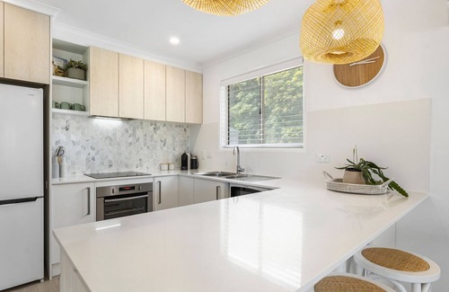 Within the home, a well-equipped kitchen awaits culinary enthusiasts - boasting a full-size fridge, microwave, toaster, oven, and even a dishwasher for convenient clean up. The property's single bathroom is functional, linen is supplied to ensure a stress-free, luxurious stay.