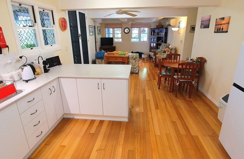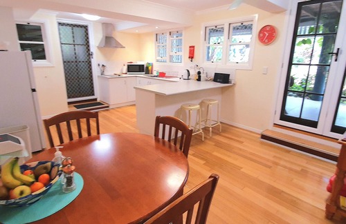 Close to hospitals, boarding schools, TAFE, shops and the Botanic Gardens, the fully self-contained unit is a modern downstairs addition (with separate entrance), to a restored Queenslander. Lovely tropical garden with private access to leafy courtyard. Whether on holiday, business or visiting relatives, you'll be looked after by long term residents with lots of community knowledge and connections. Our place is good for couples, solo adventurers, business travellers, and families (with kids).