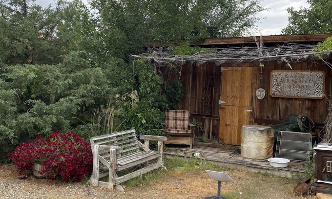 Go back in time to the old wild West with modern amenities of air conditioning propane shower, compostable toilet refrigerator microwave.. Fireplace, comfortable queen, size bed, and beautiful lanterns, and old town pictures