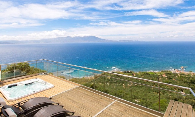 Outdoor Jacuzzi ★Unique ArchitectureOutdoor Jacuzzi ★Stunning sunset & seaview ★ is located in Kolymbari. Outdoor Jacuzzi ★Unique ArchitectureOutdoor Jacuzzi ★Stunning sunset & seaview ★ provides accommodation, featuring Laundry, View, Private Pool, among other amenities. This Villa features Laundry, View, Private Pool, to make your stay a comfortable one.