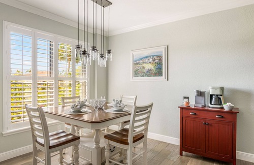 Outdoor Paradise - Immerse yourself in the captivating allure of our heated pool, surrounded by plush patio furniture, all overlooking the serene landscaping. Enjoy delightful al fresco dining at our outdoor dining area with a built-in fire table, or simply soak up the sun on our inviting chaise lounge chairs. Fire up the propane grille, equipped with all the necessary accessories, for an unforgettable outdoor culinary experience. We provide pool and beach towels for your convenience as well as a beach umbrella, coolers, and beach chairs.