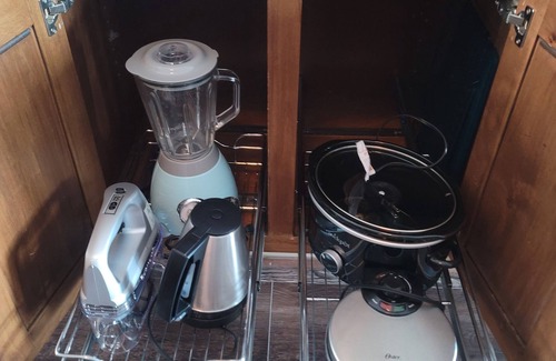Discover all the grilling tools – utensils, skewers, and gloves – in the last kitchen drawer. Please handle the equipment with care during use and clean the grill grates afterward. Help us maintain the grill and its cover by reinstalling the cover after use and once it has cooled. If you prefer not to clean the grill, a $25.00 cleaning fee may be added to cover the extra service provided by our cleaners. Thank you!