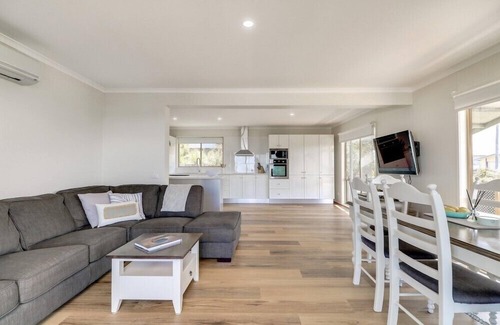 Outlook Views is a spacious, three-bedroom holiday home offering stunning panoramic lake views and partial ocean vistas. With two bathrooms, a full kitchen, and a large deck, it’s perfect for entertaining. The property is just a short walk to the surf beach, Waterwheel Tavern, and a boat ramp. It accommodates up to seven guests, featuring family-friendly amenities, including air conditioning, a BBQ, and ample parking for boats. No pets or smoking are allowed.