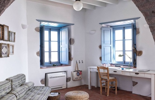 Welcome to the Villa Harbour View, a charming retreat designed to make you feel completely at home during your stay. Every detail of this villa has been thoughtfully curated to blend comfort with the rich heritage of Patmos. The space exudes character, with traditional cotto tiles in a warm dusky coral hue, complemented by antique furnishings and intricate décor that reflect the island’s distinct style.