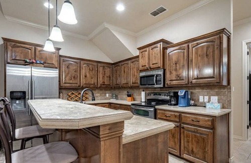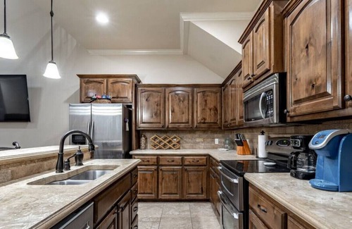 Your family will be close to everything when you stay at this centrally-located home near Texas Tech. This 3BR/3.5BA home features a stocked kitchen, two living areas, comfy furniture, new bedding, and smart TV's throughout to make your stay as comfortable as possible. Our king and queen mattresses will give you the best sleep while traveling, and more can sleep on the couches. Garage parking with EV Charger is available as well as two private outdoor seating areas. Enjoy your next stay here!