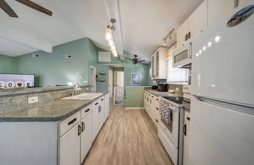 This adorable home has the perfect family layout, where you can spend time together without ever feeling crowded. You’ll love relaxing in the Living Area with colors of sea grass and sand dunes, and enjoying Free WiFi and Flat Screen Smart TV. Sink into the comfy furnishings for movie time, or slip out to the fabulous Screened Porch with seating for all!