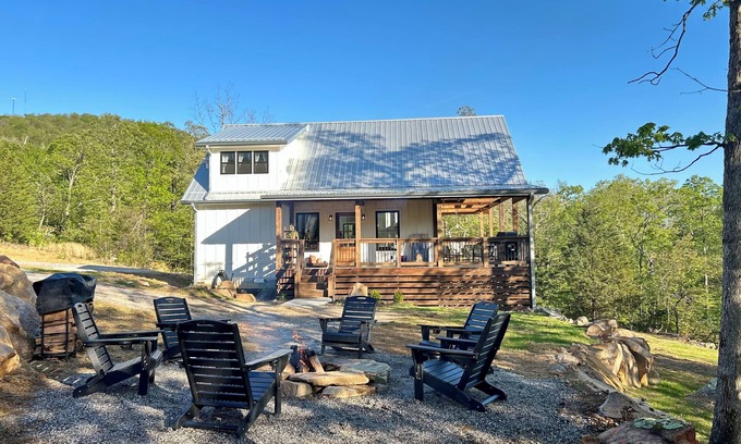 We are located 3.7 miles down a maintained gravel road,a peaceful drive in the country!Our getaway is situated on 14 acres of wooded land,sitting beside a spring time running creek!Our guests are welcome to explore and enjoy the creek!We have a propane grill on the wrap around porch, as well as a fire pit in the yard!