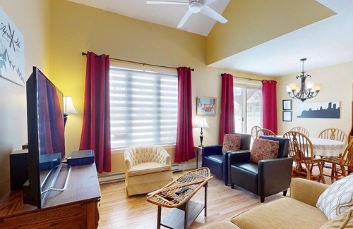 Charming 3-bedroom condo located 1 km from Mont-Sainte-Anne. Welcoming, comfortable and close to the action, it can accommodate up to 8 people.