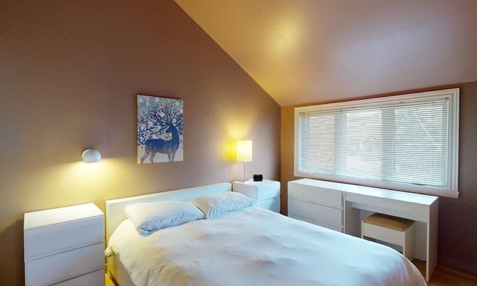 This small 2-bedroom cottage has a fully equipped kitchen and fireplace. With two bedrooms upstairs, a double sofa bed and an extra bed on the mezzanine, it can accommodate up to 7 people. Our indoor pool and jacuzzi are within walking distance, and it's only a minute's drive to Mont Sainte-anne and its slopes.