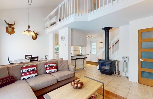 This small 2-bedroom cottage has a fully equipped kitchen and fireplace. With two bedrooms upstairs, and an extra bed on the mezzanine, it can accommodate up to 6 people. Our indoor pool and jacuzzi are within walking distance, and it's only a minute's drive to Mont Sainte-anne and its slopes.
