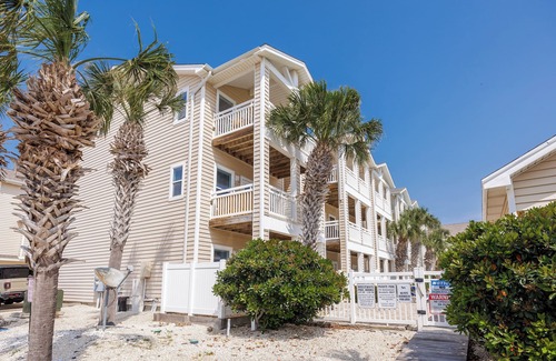 At the home, you’ll be within walking distance of the sandy beaches and sparkling waters of the Texas Gulf and the North Padre Island Seawall. For cooling off a little closer, the complex’s outdoor pool is a tropical oasis, enveloped by palm trees inviting you to feel the refreshing breeze while you take a dip or stretch out in one of the loungers. Dining and shopping are just a stone’s throw away from your front door, and you can opt to explore by foot or via the included, optional 6-person golf cart.