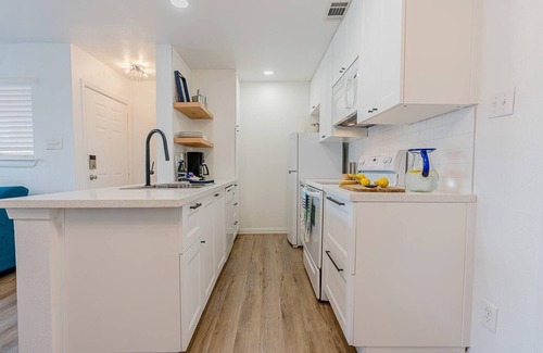Purple mattress, fluffy down pillows, buttery cotton sheets, 4k smart TVs, full kitchen and a tranquil patio to enjoy.