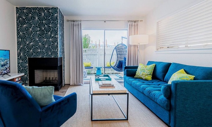 You'll want to hang out in the awesome nest chair while soaking up sunshine on the private patio. Or sit in the armchairs and enjoy a glass of wine and conversation while your partner is cooking on the electric grill. Located just a few steps from the community pool, feel free to jump in or lounge around.