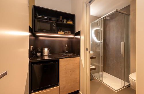 Food & DrinkTea/Coffee makerBathroomPrivate bathroom, Bidet, Toilet paper, Body soap, Toothbrush, Shower, Walk-in shower, Toilet, Free toiletries, Hairdryer, TowelsMedia & TechnologyFlat-screen TV, TVGeneralHardwood or parquet floors, Smoke Alarm, Air conditioning, Trash cans, Heating, Key access, Private entrance, SoundproofKitchenToaster, Wine glasses, Coffee machine, Microwave, Kitchenette, Refrigerator, Electric kettleViewView, City viewBedroomWardrobe or closet, LinensAccessibilityUpper floors accessible by elevator, Accessible by elevatorRoom AmenitiesSocket near the bed, Clothes rack, Feather pillowPhysical distancingSingle-room AC for guest accommodation |