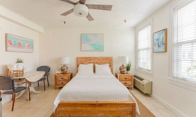 Stay in this beautifully remodeled condo with a rare POOL VIEW, just two blocks from the beach and surrounded by a heated pool, restaurants, cafes, shopping, and parks. Walk everywhere or rent a bike to explore. Located in the gorgeous Palm Beach Hotel, you’re just half a mile from downtown West Palm Beach. Beach chairs, an umbrella, and a cooler are included for free, making your beach day even easier.