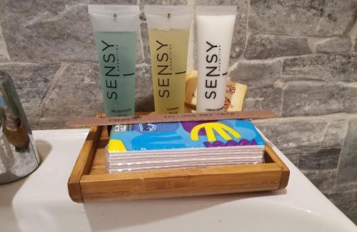 Food & DrinkTea/Coffee makerBathroomTowels, Bathtub or shower, Conditioner, Toilet, Shampoo, Private bathroom, Body soap, Shower, Toilet paper, Free toiletriesKitchenKitchenette, Dining table, Kitchenware, Refrigerator, Wine glasses, Coffee machine, Stovetop, Cleaning products, KitchenLiving AreaSitting area, Dining areaGeneralFan, Trash cans, Mosquito net, Hardwood or parquet floors, Key access, Private entranceViewGarden view, View, Sea viewOutdoorsTerrace, Outdoor furnitureBedroomLinensAccessibilityUpper floors accessible by stairs only, Entire unit located on ground floorBuilding CharacteristicsDetachedRoom AmenitiesNon-feather pillowCleanliness & disinfectionHand sanitizer |