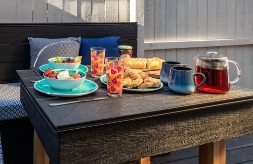 Our Clan Fraser themed interior features a designer kitchen with marble worktops, 4 seat dining area, 4k tv with Netflix, window seat & persian rugs. Underfloor heating throughout overlaid by hardwood floors.