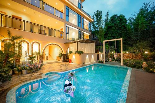 Located in Taiping, 3.7 miles from Mount Qingcheng, Panda's Home Private Hot Spring Cinema Hotel provides accommodations with a seasonal outdoor swimming pool, free private parking, a garden and a terrace. Among the facilities of this property are a restaurant, a kids' club and room service, along with free WiFi throughout the property. The hotel features a hot tub and a 24-hour front desk. At the hotel, rooms are equipped with a closet. Every room includes a private bathroom with a shower, free toiletries and a hairdryer. All guest rooms at Panda's Home Private Hot Spring Cinema Hotel feature air conditioning and a desk. The accommodation offers an à la carte or Asian breakfast. There's also a business center with meeting and banquet facilities and a children's playground on site. Lidui Park Railway Station is 8.9 miles from Panda's Home Private Hot Spring Cinema Hotel, while South Bridge is 9.1 miles away. Chengdu Shuangliu International Airport is 40 miles from the property.