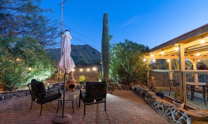 This Sonoran bungalow is nestled in a quiet neighborhood with gorgeous desert views. Sleeping up to 6 guests and ensuring a comfortable stay, we can't wait to host you!