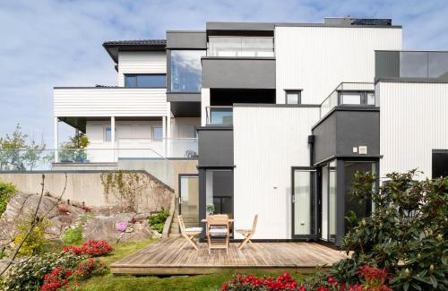 Panoramic view with private terrace is a recently renovated apartment in Bergen, near Norwegian School of Economics. The air-conditioned accommodation is 2.7 miles from Hakon’s Hall, and guests can benefit from private parking available on site and free Wifi. Outdoor seating is also available at the apartment. Featuring a terrace and sea views, the apartment includes 2 bedrooms, a living room, cable flat-screen TV, an equipped kitchen, and 1 bathroom with a shower. Towels and bed linen are available in the apartment. This apartment is allergy-free and non-smoking. Guests can relax in the garden at the property. Rosenkrantz Tower is 2.7 miles from Panoramic view with private terrace, while Bergen University is 5.1 miles from the property. "Bergen, Flesland" Airport is 12 miles away.