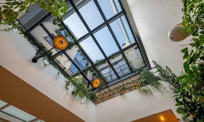 Opulent and modern 950 square meter house with air-conditioning throughout the building in the fashionable Menilmontant neighborhood of Paris, with a stunning 50 square meter terrace offering views of the Parisian skyline.