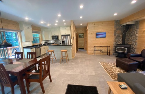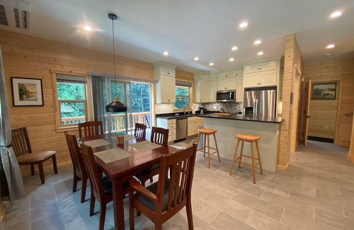 Tucked away in a peaceful forest setting, this newly completed, hand-built home is a true labor of love—designed for comfort, connection, and quiet relaxation. Thoughtfully laid out to accommodate up to 8 guests, every inch of this home has been crafted with care, from the warm pine walls to the birch floors imported from Quebec, Canada.