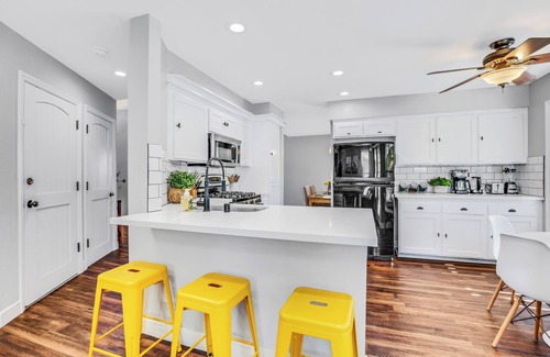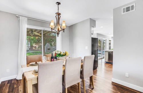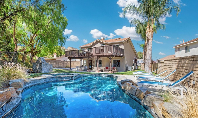 Nestled in the serene Santa Clarita Valley, this luxurious vacation retreat is just minutes from Magic Mountain Six Flags, offering a custom-built backyard oasis with a zen pool and spa. Enjoy ample living space across two floors, ensuring privacy and comfort for all guests. Ideal for escaping the hustle and bustle of LA, the area also boasts stunning hiking trails and convenient access to Valencia Town Center for shopping and dining.