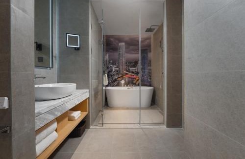 Located in Jinghai, 19 miles from Tianjin Olympic Center Stadium, Park Inn by Radisson Tianjin Jinghai Wanda Plaza features views of the city. Among the facilities of this property are a restaurant, a 24-hour front desk and a concierge service, along with free WiFi throughout the property. The hotel features family rooms. Guest rooms are equipped with air conditioning, a flat-screen TV with cable channels, an electric tea pot, a shower, free toiletries and a desk. All guest rooms include a safety deposit box. Tianjin Radio and Television Tower is 20 miles from the hotel, while Tianjin World Economy Trade and Exhibition Center is 20 miles away. Tianjin Binhai International Airport is 30 miles from the property.