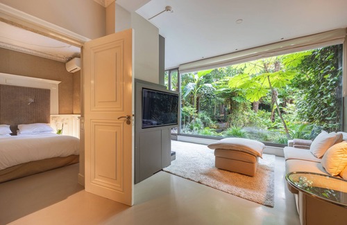 GeneralFireplace, Number of bedrooms - 1, Dishwasher, Spices, Stovetop, Minibar (stocked, free items), Garden view, Wardrobe or closet, Heated floors, Bed count minimum 1, Toaster, Kitchenette, Smooth flooring in room, Laptop-friendly workspace, Towels provided, Number of living rooms 1, Heated floor, Number of bathrooms - 1, Cookware, dishware, and utensils, Furnished patio, Private bathroom, Location - ground floor, Oven, Refrigerator, Bed count maximum 1 |