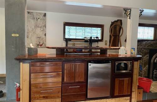 -There is a building on the property called the "Wish Room" which has a wood burning fireplace in the middle of the room, as well as a piano, guitars, record player, gas grill, cable TV and wifi. In winter, the "Pavilion" is converted from an event space into a game room - check it out! We have ping pong and foosball in there, plus our cornhole boards are in there too!