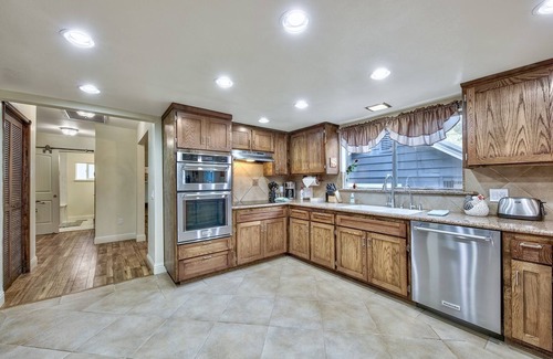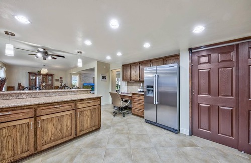 Tons of room in this house for adults and kids. With a HUGE kitchen and dining area, you'll have plenty of room to cook, dine and entertain. With 5 bedrooms there is also plenty of space to 'hide' if you need to.
