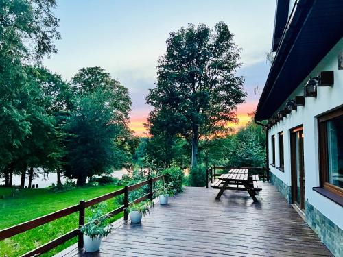 Park Wilkasy is a recently renovated vacation home in Gołdap where guests can make the most of the garden and shared lounge. This beachfront property offers access to a patio, a pool table, free private parking, and free Wifi. On clear days, guests can head outside to enjoy the vacation home's outdoor fireplace or simply kick back and relax. Offering a terrace and lake views, the spacious vacation home includes 3 bedrooms, a living room, flat-screen TV, an equipped kitchen, and 4 bathrooms with a hot tub and a shower. A private entrance leads guests into the vacation home, where they can enjoy some fruit and chocolates or cookies. The vacation home offers bed linen, towels, and ironing service. A continental, full English/Irish, or Italian breakfast can be enjoyed at the property. Guests can take advantage of yoga classes held in house. You can play table tennis and darts at the vacation home, and the area is popular for cycling and hiking. A private beach area, a ski pass sales point, and ski storage space are all offered at Park Wilkasy, and guests can go skiing in the surrounding area. Hancza Lake is 26 miles from the accommodation, while Castle Mountain is 28 miles from the property. Olsztyn-Mazury Airport is 111 miles away.