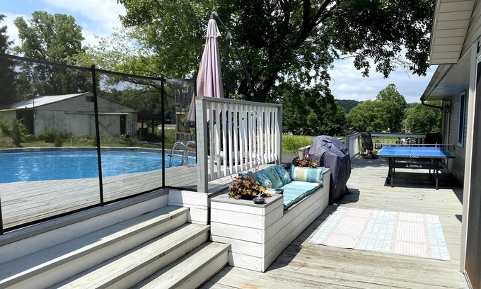 The perfect family retreat in the Hocking Hills. We focus on giving you endless options for entertainment when you return from hiking the gorgeous trails. Challenge your friends and family in shuffleboard, skeet ball, air hockey, ping pong (both indoor and outdoor), or billiards. In the city park literally right outside your doorstep, you will have access to sports fields for baseball, soccer, basketball, or just playing on the large castle playground. You can relax in our large 8x8 hot tub. The pool is open from memorial day to labor day.