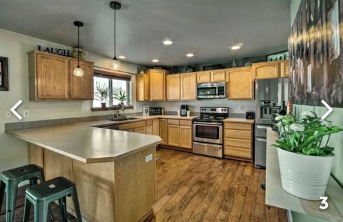 Great roomy family home with an in-ground pool and hot tub (seasonal June - Sept depending on weather) featuring 4 bedrooms, 2.5 baths, you will love the great outdoor space with gazebo, BBQ, outdoor dining and living area. Awesome spot to make some good family memories. For sleeping there is one king bed in master bedroom and 3 queen beds in the other bedrooms, making for comfortable sleeping for 8. If your group is larger, there are also 2 Full-sized futons in the Family room and one Full-sized futon in the Living room, so 6 more can fit. Your also welcome to bring air mattresses, etc. if you’d like. Base nightly rate includes 8 persons, over 8 persons there is $25/per person/per night fee added. Note the extra person charge won’t be reflected in your reservation request, I’ll add the extra persons to your quote before you book.