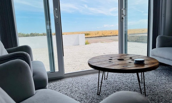 Truly a perfect getaway beach front location (132 steps to dip your toes in the ocean) Have fun with the whole family at this stylish place. Fabulous stylish sun trap terrace for those evening cocktails and BBQ's, furnished with sun loungers and a spectacular outdoor shower. On the doorstep of great places to visit such as Rye, Hastings & some of the best vineyards the UK has to offer.