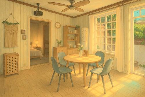 BathroomFree toiletries, Toilet, Toilet paper, Body soap, Towels, Hairdryer, Shower, Bathtub or shower, Shampoo, Conditioner, Slippers, Private bathroomMedia & TechnologyTV, Flat-screen TVGeneralHeating, Air conditioning, Trash cans, Private entrance, Carbon monoxide detector, Electric blankets, Fire extinguisher, Fan, Iron, Smoke AlarmKitchenCoffee machine, Dining table, High chair, Dryer, Kitchen, Electric kettle, Wine glasses, Microwave, Refrigerator, Kitchenware, Toaster, Stovetop, Washing machine, Cleaning productsLiving AreaDining area, DeskBedroomWardrobe or closet, Linens, Childrens' cribsViewCity viewBuilding CharacteristicsDetachedRoom AmenitiesAdapter, Drying rack for clothing, Socket near the bed, Clothes rack, Non-feather pillowEntertainment & Family ServicesBoard games/puzzlesAccessibilityRoll-in showerFood & DrinkBottle of waterSafety featuresAir purifiersPhysical distancingSingle-room AC for guest accommodation |