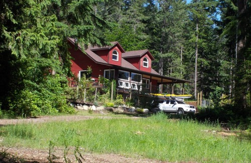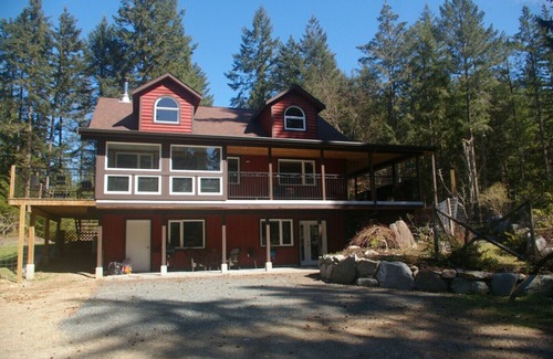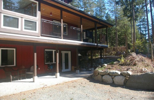 Like new level entry walk out, one bedroom basement suite on a rural property situated on Quadra Island. Just 4kms from the ferry terminal and other amenities. Suite is easy access with parking immediately outside the front door. Private covered patio with barbeque. Full kitchen and comfortable livingroom with cable tv and wifi. Queen bed and ensuite bath. Roll-away cot available. Shared laundry. On a lovely 12 acre property with great views down the hill to a large pond. Guests are invited to roam our easy walking trails through the forest on the property. We are also located just a short walk/drive to several well maintained community walking trails. 1.5kms to a beach access, 3kms to the golf course and 7kms to Rebecca Spit. Hostess on site with a large, very friendly dog. A peaceful place to enjoy your stay.