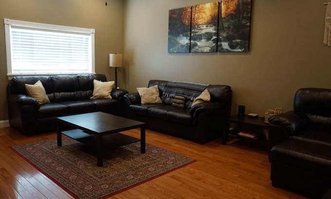 This newly remodeled row house has an open floor plan with large rooms and high ceilings which you will notice upon entering. The first floor has a huge living room with plenty of comfortable seating for the entire group. You can watch the large flat-screen television with surround sound which is equipped with many DVD movies and Apple TV.
