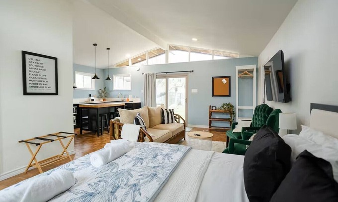 Escape to the charming Paloma Casita nestled in the picturesque Corpus Christi. Ideally situated along the stunning Corpus Christi Bay, this delightful cottage is just a stone's throw from the vibrant downtown area and the Texas A&M Islander campus. It's the perfect getaway for beach lovers, whether you're looking to explore the South Texas Aquarium, tour the USS Lexington, or attend events at the American Bank Center.