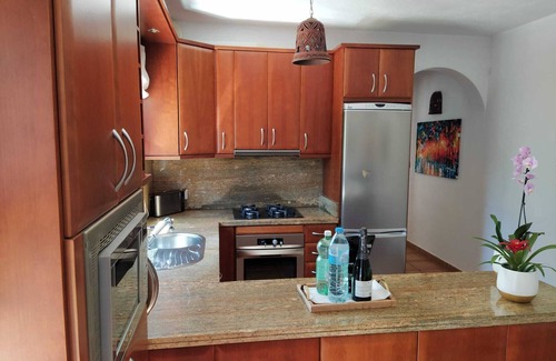 The villa has 1 bedroom, satellite TV, kitchen with dishwasher and microwave, washing machine and 1 bathroom with shower.